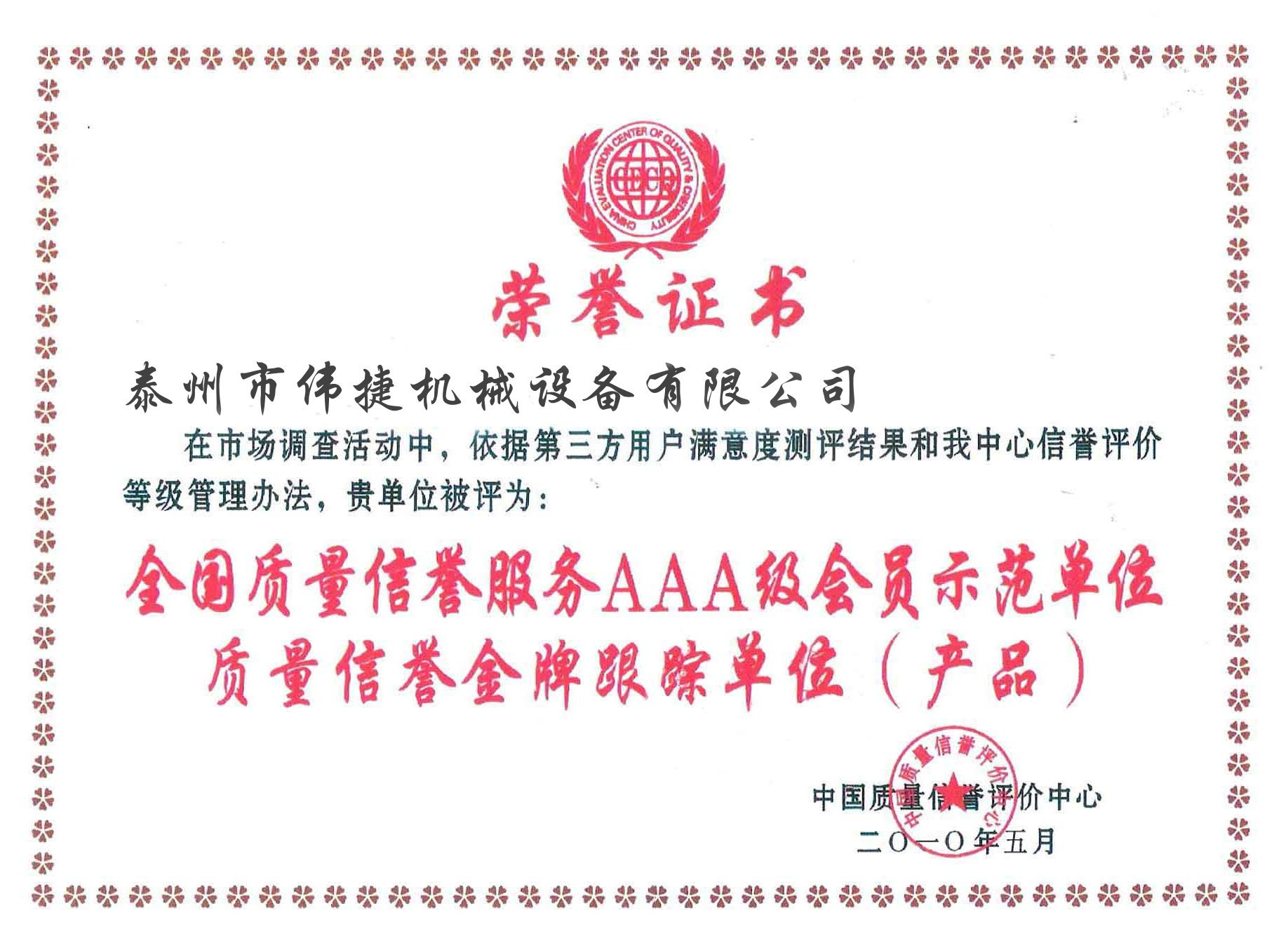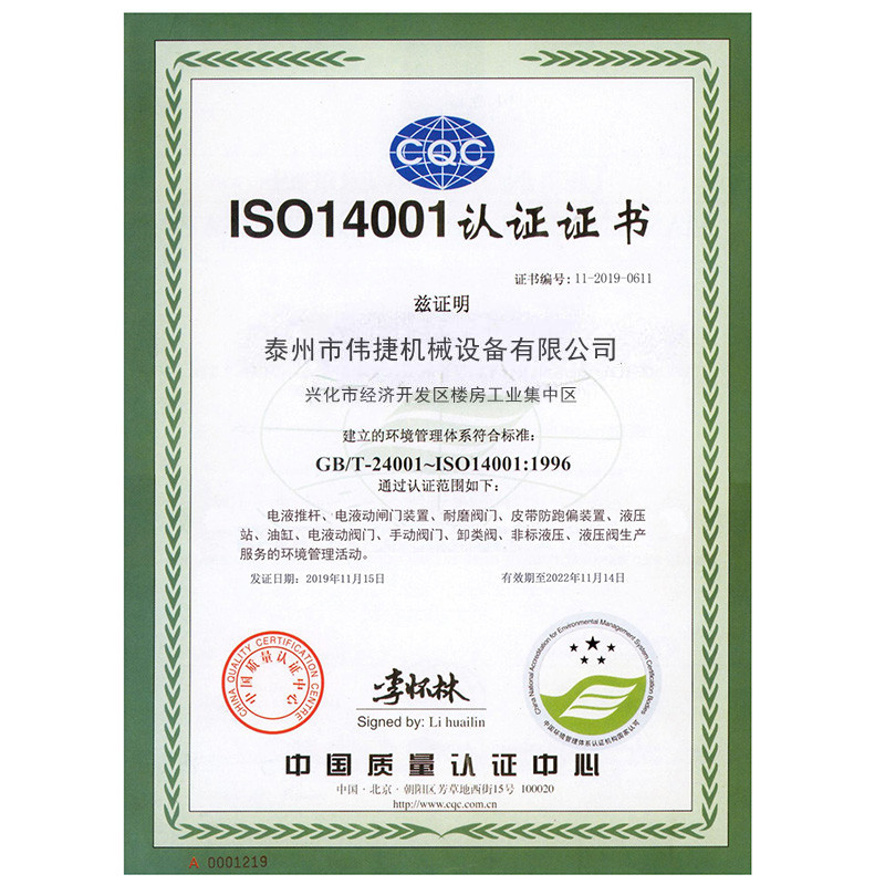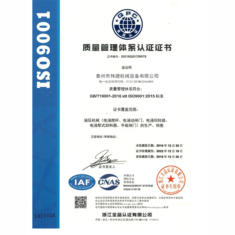 偉捷機械設備資質證書